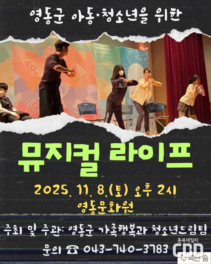 충북 영동군(군수 정영철) 드림스타트는 오는 8일(토) 오후 2시, 영동문화원(영동천2길 29)에서 아동·청소년을 위한 뮤지컬 ‘라이프(Life)’공연을 개최한다.