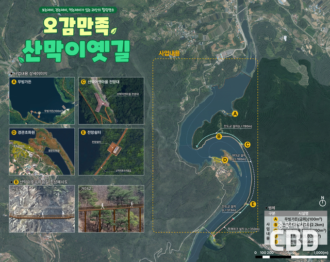 군은 공모 선정으로 총사업비 80억 원(도비 포함)을 확보했으며, 산막이옛길 구간 내 단절된 탐방로를 연결하는 이음길과 관광 편의시설을 확충할 계획이다.