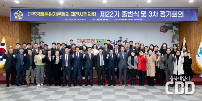 민주평화통일자문회의 제천시협의회(협의회장 이진희, 이하‘제천시협의회’)는 11월 19일 제천시청 청풍호실에서 김창규 제천시장, 자문위원 등 58명이 참석한 가운데 ‘제22기 출범식 및 2025년 3차 정기회의’(이하‘출범식’)을 개최했다.