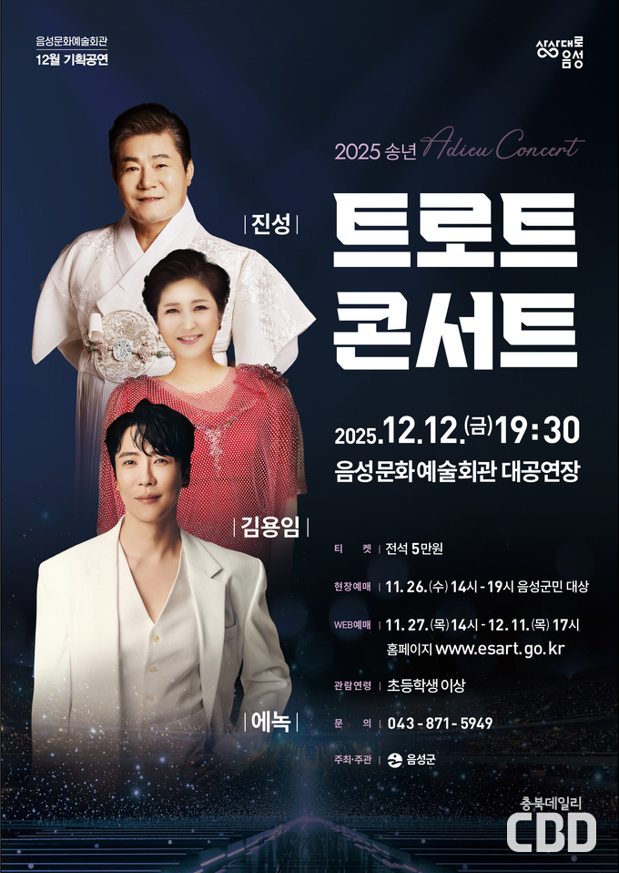 음성군은 2025년 한 해를 마무리하며 흥과 감동이 가득한 ‘2025 송년 트로트 콘서트’를 오는 12월 12일 오후 7시 30분 음성문화예술회관에서 개최한다.