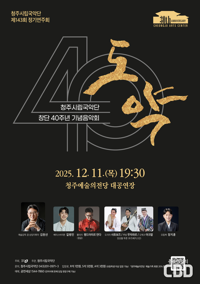 이번 공연은 올 한 해를 마무리하는 무대이자 청주시립국악단의 창단 40주년을 기념하는 뜻깊은 자리로 더욱 특별한 감동을 선사할 예정이다.