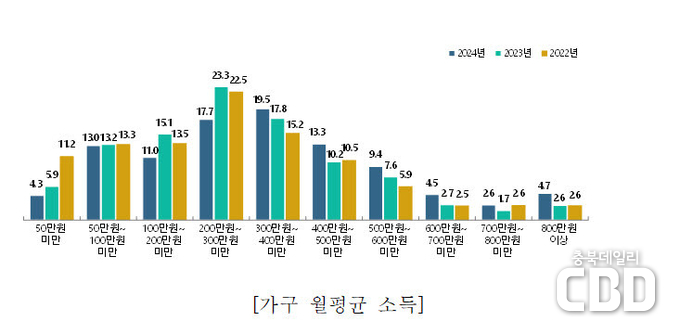 조사에 따르면, 가구 월평균 소득은 ‘300만~400만 원 미만’(19.5%)이 가장 높은 비중을 보였다.