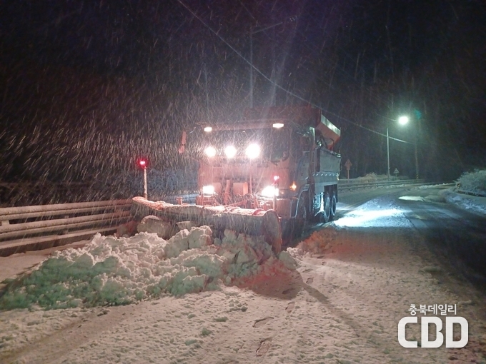 군은 덤프 7대, 굴삭기 1대 제설기 7대 살포기 7대 등을 활용해 24시간 대응체계를 구축했으며, 제설 자재 소금 683톤과 염화칼슘 293톤을 사전 확보했다.
