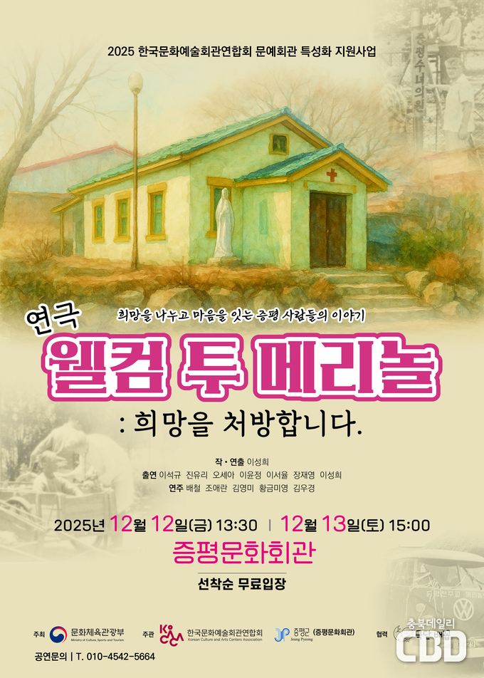 증평군, 이달 12~13일‘웰컴 투 메리놀! 희망을 처방합니다’ 공연 (2025 문예회관 특성화 지원사업 선정작) |