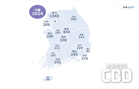 * (2024년) 1위서울 2,894개소, 2위경기 1,233개소, 3위부산 363개소, 4위충북 361개소