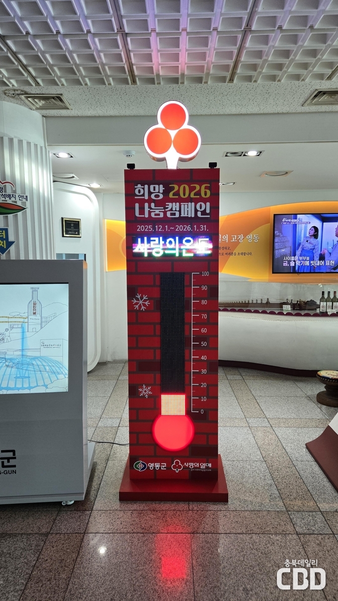오는 12일 오전 11시에는 영동군청 로비에서 주요 내빈이 참석한 가운데 ‘사랑의 온도탑 100도 시연식’이 열릴 예정이다. 같은 날에는 현장 모금 행사도 함께 진행돼 군민들의 자발적인 참여 분위기를 확산할 계획이다.