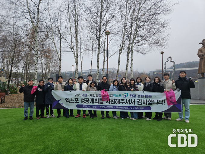 2025제천국제한방천연물산업엑스포조직위원회(사무총장 정길)는 지난 11일, 제천한방엑스포공원 일원에서 직원 전원이 참여하는 환경정비 봉사활동을 펼치며 조직위의 공식 활동을 뜻깊게 마무리했다.