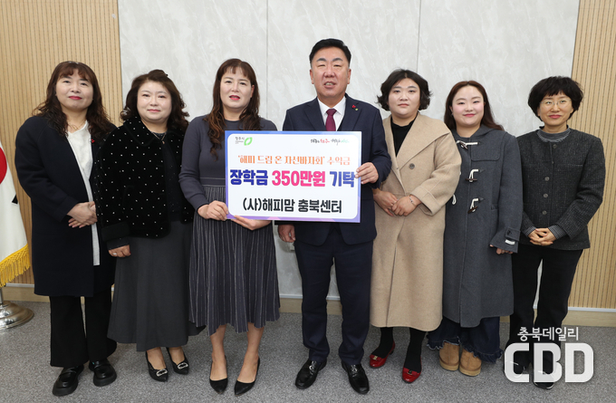 (사)해피맘 충북센터(센터장 남현순)은 16일 어려운 가정환경에도 불구하고 학업에 열중하는 청주지역 학생을 지원하기 위해 청주시에 장학금 350만원을 기탁했다.