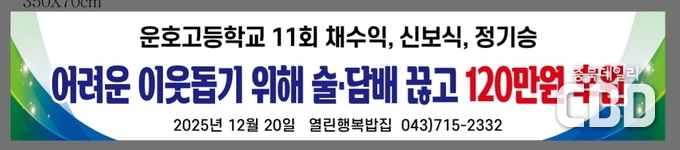 청주 운호고 동문중 건설관련 직종에 종사하는 회원으로 친목단체인 '건운회'가 있다. 미담의 주인공을소개한다. '건운회' 회원인 채수익 후배가 행복밥집 힘들게 꾸려 간다는 것을 알고 운호고11회 동창 3명 (채수익.신보식.정기승)이 행복밥집에 쌀이 떨어져서 밥을 못하고 있는 사실을 알고 담배,술을 끊어 술.담배값을 저축하여 열린행복밥집에 후원하면 일거양득이 될것이라고 의기투합해서 20일(토) 9시까지 방문하여 봉사도 하고 후원금도 전달할 예정이라고 연락이 왔다.