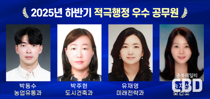 충북 증평군이 공직사회 내 적극행정 문화를 확산하고 실질적인 행정 성과를 이끈 공무원 4명을 ‘하반기 적극행정 우수공무원’으로 선정했다.