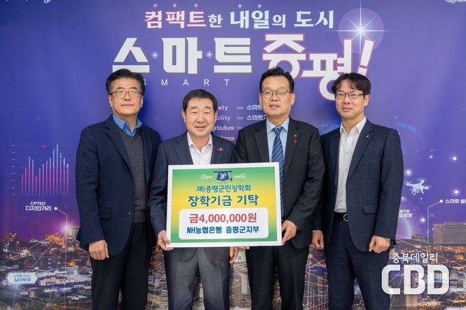 충북 증평군은 NH농협은행 증평군지부(지부장 연제문)가 18일 군청을 찾아 지역의 우수인재 양성을 위해 써달라며 (재)증평군민장학회(이사장 이재영 증평군수)에 장학금 400만원을 기탁했다고 밝혔다.