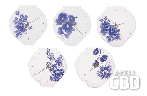 ‣ 작품명: <달항아리 시계> ‣ 청화를 사용하여 꽃을 그려넣은 달항아리 도자기 시계 |