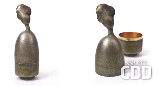 ‣ 작품명 : <향로> ‣ 단금기법*으로 제작된 기물. 정원으로 이루어진 3개의 기(器)가 정확히 맞물리는 것에 유념한 기법 * 금속판을 망치질로 성형하는 기법, 주로 순금속(적동, 은) 사용 |
