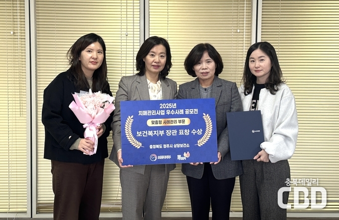 청주시 상당보건소는 2025년 치매관리사업 우수사례 공모전에서 치매안심센터 맞춤형 사례관리 부문으로 보건복지부장관 표창을 수상했다고 22일 밝혔다.