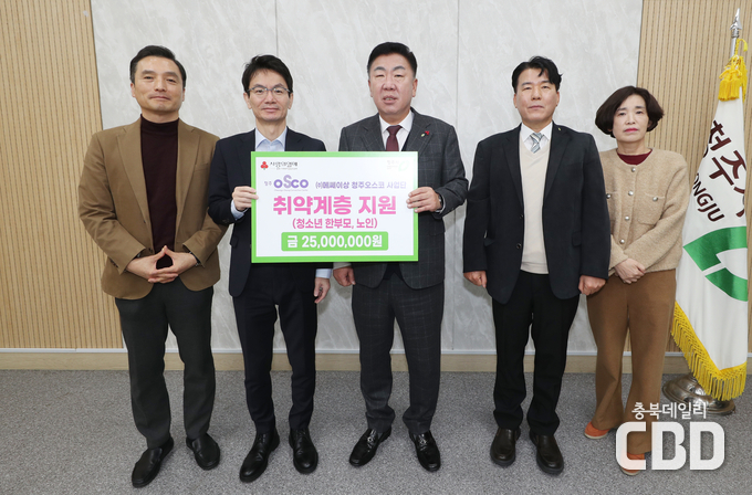 ㈜메쎄이상 청주오스코사업단(이하 사업단)은 24일 청주시청을 방문해 소외이웃 돕기를 위한 성금 2천500만원을 기탁했다.