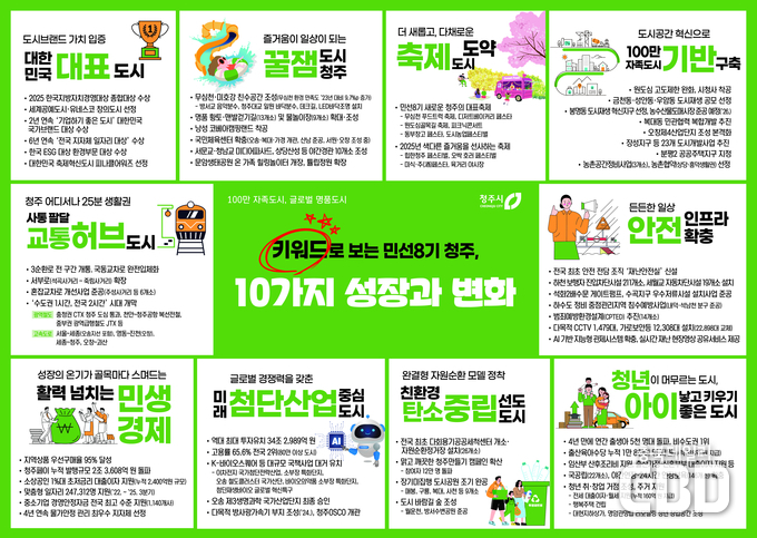 ∙ 청주시, 키워드로 보는 ‘민선8기 10대 성과’ 발표 - 역대 최대 투자유치, 꿀잼도시, 교통허브 도시 등 10개 분야서 시민 행복 실현 |