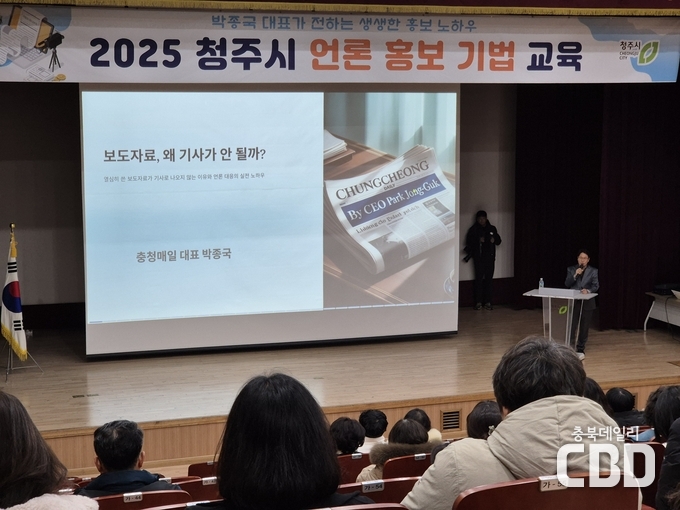 이날 교육에는 청주시 직원 100여명이 참석했으며 강의는 박종국 충청매일 대표이사가 맡아 진행했다.