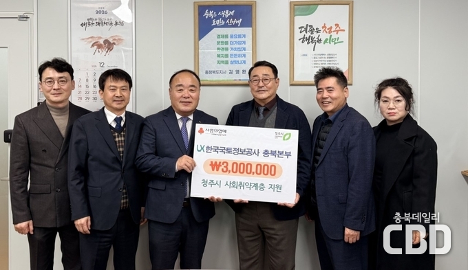 한국국토정보공사 충북본부는 30일 청주시청을 방문해 사회취약계층 지원을 위한 성금 300만원을 시에 기탁했다.