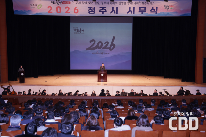 청주시는 2일 청주예술의전당 대공연장에서 2026년 시무식을 개최하고 새해 시정 운영의 힘찬 출발을 알렸다.