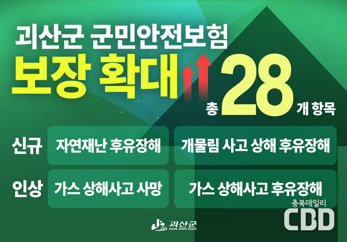 충북 괴산군(군수 송인헌)은 예기치 못한 사고와 재난으로 피해를 입은 군민의 일상 회복을 돕고 안전하게 생활할 수 있는 2026년도 군민안전보험을 확대 운영한다.