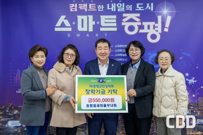증평읍 새마을부녀회(회장 남현순)는 9일 증평군청을 방문해 지역의 우수 인재 양성을 위해 써달라며 (재)증평군민장학회(이사장 이재영 증평군수)에 장학금 55만 원을 기탁했다.