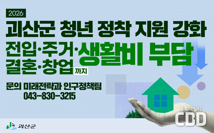 충북 괴산군(군수 송인헌)은 청년층의 지역 정착을 지원하기 위해 전입 지원, 주거비 지원, 결혼·신혼부부 지원, 배움·동아리·창업 지원 등 생애 전환 단계별 맞춤형 청년정책을 본격 추진한다고 14일 밝혔다.