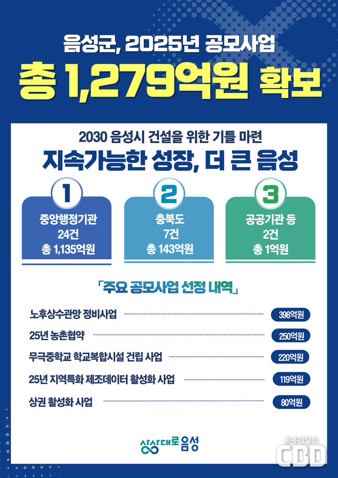1. 음성군, ‘선택과 집중’ 통했다… 공모사업 1279억 원 확보 쾌거