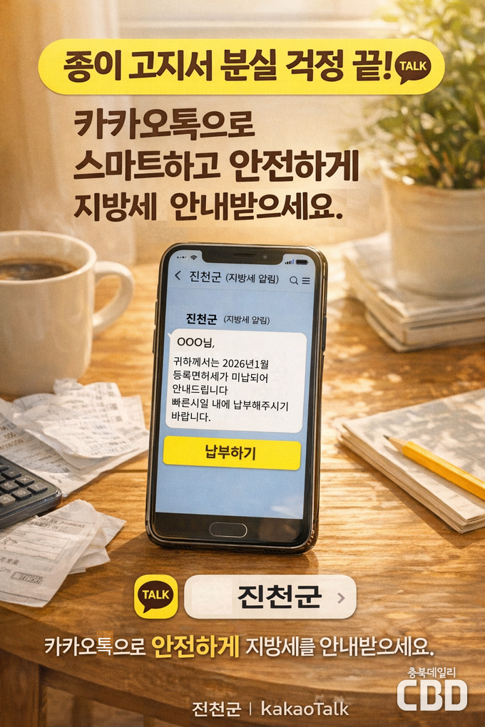 충북 진천군은 1월부터 ‘지방세 카카오 알림 톡 전자고지 서비스’를 본격 도입하며 스마트한 세정 혁신에 나선다고 26일 밝혔다.