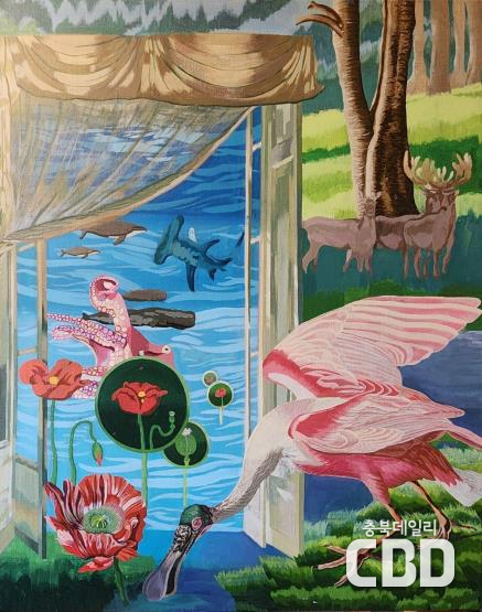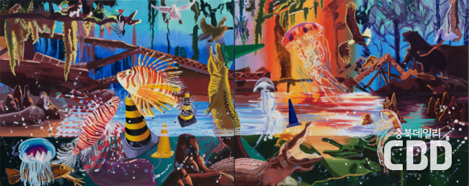 ○ 이번 전시에서는 대표작 <우리의 세계 Part 1>, <우리의 세계 Part 2>를 비롯하여, 자유롭게 유영하는 바다 생물과 일상의 풍경이 부유하는 이미지를 담은 회화 작품들을 선보입니다. 작가는 낯설지만 아름다운 심연의 바다에 육지 동물이나 비현실적인 장치를 배치하여 시공간을 초월한 풍경을 시각화했습니다. 이번 전시에 많은 관심과 보도를 부탁드립니다.