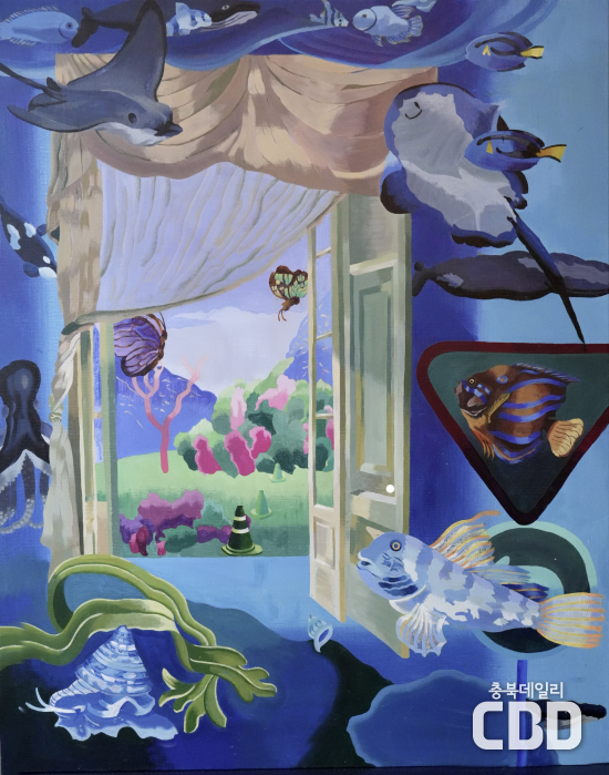 대표 작품으로는 <우리의 세계 Part 1>, <우리의 세계 Part 2>가 있습니다. 제 작품의 주요 소재는 ‘바다’입니다. 낯설지만 아름다운 바다는 우리가 도달할 수 없는 일종의 유토피아적 풍경입니다. 알지 못하기에 두렵지만, 동시에 동경과 호기심을 불러일으키며 경외감을 느끼게 합니다. 나아가 해양 속 육지 동물이나 비현실적인 장치를 통해 현실에 존재할 수 없는 아름다운 유토피아를 구현하고 있습니다. 이로써 현실과 이상 세계가 한 화면에서 공존하게 됩니다.