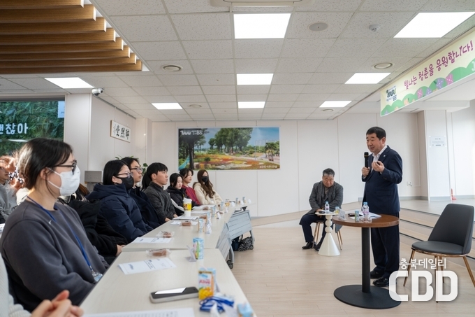 충북 증평군이 지난 28일 김득신문학관에서 2026 증평군 동계 학생근로에 참여한 30여 명의 대학생들을 대상으로 간담회를 개최했다.