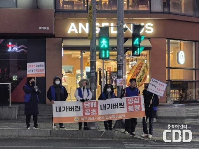 바르게살기운동 연수동위원회(위원장 장현순)가 29일 저녁 올해 첫 봉사활동으로‘담배꽁초 잘 버리기 캠페인’을 성공적으로 전개했다고 밝혔다.