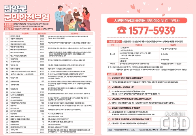 단양군이 군민의 일상생활 속 각종 사고와 재난으로 인한 피해 부담을 덜기 위해 2026년도 군민안전보험을 갱신 가입하고 보장 내용을 대폭 확대했다.