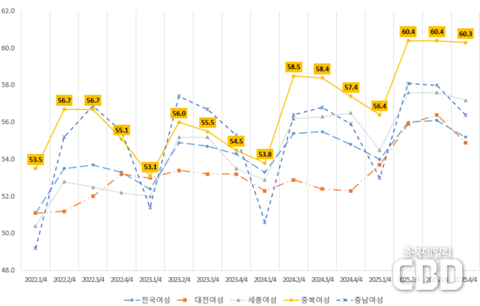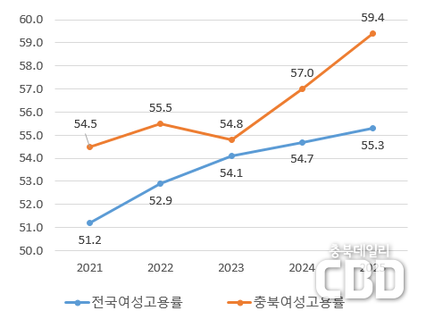 충북, 2025년 연간 여성 고용률 59.4%로 전국 2위