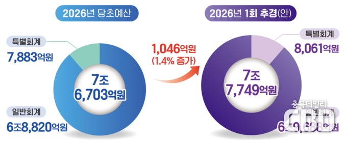 충북도, 제1회 추가경정예산안 1,046억원 증액 편성