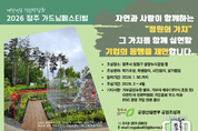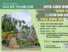 청주시 “정원으로 ESG 실천할 기업 찾습니다” - ‘대한민국 정원박람회 2026 청주 가드닝 페스티벌’ 참여 기업 모집 - 청주시는 정원문화와 정원산업 활성화를 위해 2026년 5월 생명누리공원에서 열리는 ‘대한민국 정원박람회 2026 청주 가드닝페스티벌’에 함께할 ESG 경영 기업을 모집한다고 22일 밝혔다. 정원은 기후변화 대응을 위한 탄소흡수원 역할을 하고, 가드닝 활동은 시민의 정신적·육체적 치유에 기여해 도시의 사회·환경 문제 해결 대안으로 주목받고 있다. 시는 기존에 개최해 온 ‘청주 가드닝페스티벌’을 산림청, 충청북도와 공동 개최하는 ‘대한민국 정원박람회’로 확대 개최해, 보다 다양한 정원을 선보일 계획이다. 특히 기업과 단체의 후원으로 조성되는 ‘기업동행정원’을 기획하고, 참여 기업을 모집하고 있다. 그동안 시는 SK하이닉스, 한국다우, 현대백화점그룹, 생명의숲 등 다양한 기업과 함께 청주 도심에 아름다운 정원을 조성해 시민들로부터 큰 호응을 받아왔다. 2026년 생명누리공원에 조성될 기업동행정원은 △2025년 가드닝페스티벌 작가 공모전 대상 수상자 초청정원을 비롯해 △학생 참여정원 △시민정원사 참여정원 △
