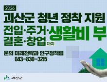 ▣ 송인헌 괴산군수 일정(1월 15일 목요일) 14:00 불정농협 유통센터에서 새해 농업인 실용 교육 참석 ▣ 보도자료 목록 구분 제 목 사진 영상 일반 괴산군 2026년 청년 정착 지원 강화 O X 일반 괴산군, 공동주택 관리비용 지원사업 추진 O X 일반 괴산군, 혹한기 취약노인 신체건강분야 안전교육 프로그램 실시 O X 일반 괴산군, 노인일자리 참여자 직무교육 및 사업설명회 성료 O X 일반 감물면 괴산군 민생안정지원금 지급을 앞두고 어르신들을 위한 현장 안내 펼쳐 O X 일반 청안면 지역사회보장협의체·기관단체협의회 “따뜻한 한끼” 나눔 실시 O X