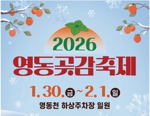 1. 2026 영동곶감축제 겨울의 달콤한 시작을 열다 충청북도 영동군의 대표 겨울 축제인 「2026 영동곶감축제」가 오는 1월 30일(금)부터 2월 1일(일)까지 3일간, 영동천 하상주차장 일원에서 개최된다. 영동곶감축제는 영동군과 (재)영동군문화관광재단, 영동곶감연합회가 공동으로 주최·주관하는 행사로, 지역 대표 겨울 특산물인 영동곶감의 우수성을 널리 알리고 지역경제 활성화 및 농가 소득 증대를 도모하기 위해 마련됐다. 축제 기간 주무대에서는 일자별로 특색 있는 공연 프로그램이 펼쳐진다. 첫째 날에는 난계국악단 공연을 시작으로 대중가수 공연과 불꽃놀이가 진행되며, 둘째 날에는 군민과 관광객이 함께 즐길 수 있는 한마음콘서트가 열린다. 마지막 날에는 가족 단위 방문객과 어린이를 위한 마술공연과 유튜브에서 인기를 얻고 있는 ‘인싸가족’ 공연이 마련돼 남녀노소 모두가 즐길 수 있는 축제의 장을 완성할 계획이다. 이와 함께 지역 예술인과 주민이 참여하는 공연도 병행해 지역 문화예술 활성화와 군민 참여형 축제로 운영한다. 축제장에는 곶감 전시·홍보관을 비롯해 곶감 시식 행사와 농가 임·농·특산물 판매 부스가 운영돼 방문객들이 품질 좋은 영동곶감과 다양한 농·특산물을