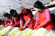 김영환 지사, 육거리종합시장 ‘사랑의 김장나눔’ 행사 격려 - 육거리상인연합회, 20여 년간 소외계층 위한 나눔 실천 - 김영환 충북도지사는 청주육거리종합시장을 방문해 ‘사랑의 김장나눔’ 행사를 준비하는 육거리종합시장 임원과 부녀회원들을 격려했다. 청주육거리종합시장 상인연합회(회장 유현모)가 주최하는 ‘사랑의 김장나눔’ 행사는 2000년부터 육거리종합시장 부녀회가 중심이 되어 20여 년째 이어져 온 지역 대표 나눔 행사다. 이날 담근 김장 김치는 모두 1,000포기(450~500상자×5kg) 규모로 상당지역아동센터, 청주시무료급식소, 장애인주간보호센터, 장애인단기 돌봄센터 등 상당구 소재 취약 계층에게 전달될 예정이다. 김영환 지사는 “20년 넘게 지역 이웃을 위해 정성껏 준비한 김치로 따뜻한 나눔을 실천해주신 상인 여러분께 감사드린다”며, “앞으로도 충북도는 소외된 이웃을 살피고 나눔 문화가 더욱 확산되도록 노력하겠다”고 말했다. 육거리종합시장「사랑의 김장나눔」행사방문 격려 행사개요 ❍ (일 시) 2025. 11. 11.(화) 09:30~11:30 ※ 지사님 08:30 일하는밥퍼 작업장 → 08:50 김장 담그기 행사장 방문 격려 ❍ (장 소) 육거리종합시
